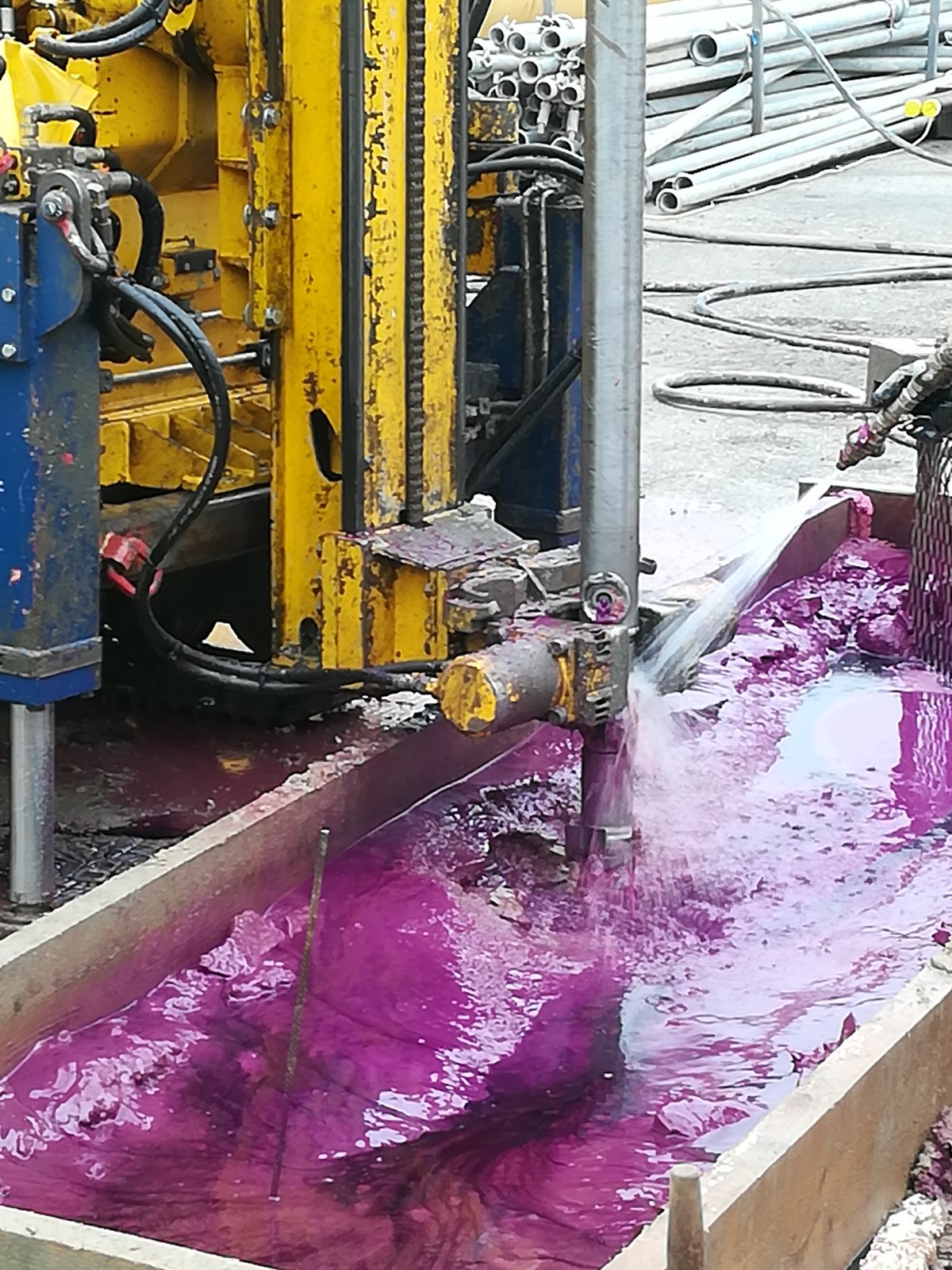 Im Zuge eines Forschungsprojekts wurde am Standort Putzerei Alaska die Einbringung von Kaliumpermanganat mit Hilfe des Düsenstrahlverfahrens getestet. Etwas mehr Farbe bitte...
