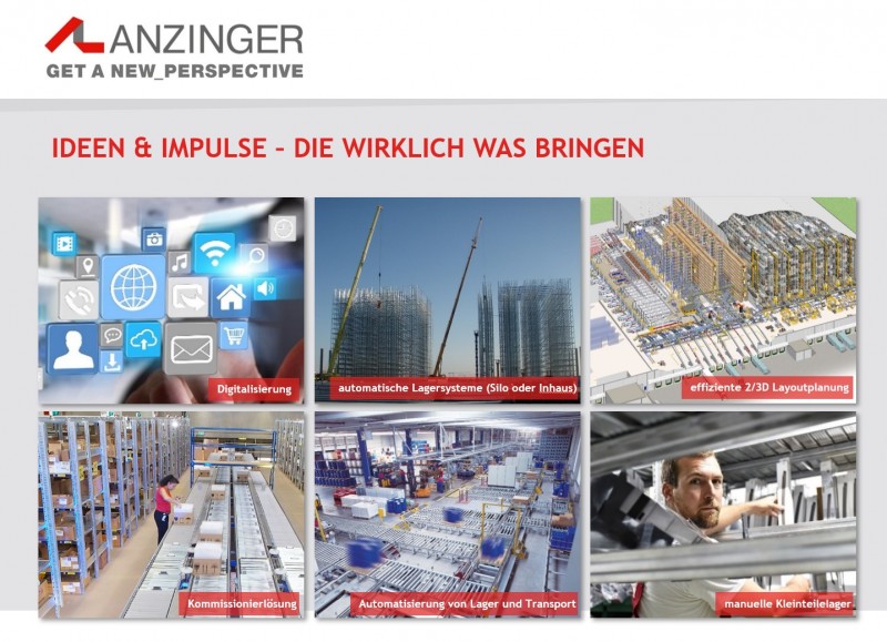 ANZINGER versteht sich als Ideenfabrik in der Planung und Realisierung von Lager-, Logistik- und Softwarelösungen.