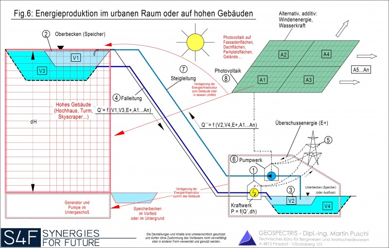 Niveau gehoben wird und dort bis zum Zeitpunkt des Energiebedarfes gespeichert wird.