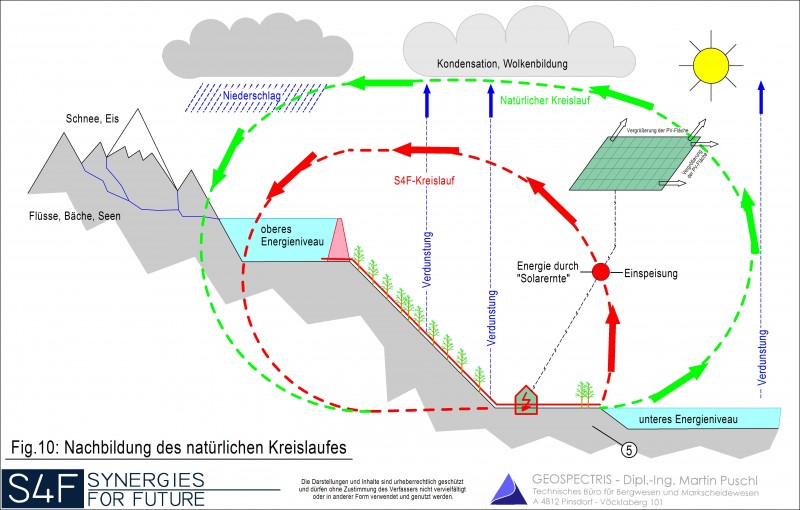 teilgeschlossenen Kreislaufsystem (Hydrosolarkraftwerk). Durch synergetische Koppelung