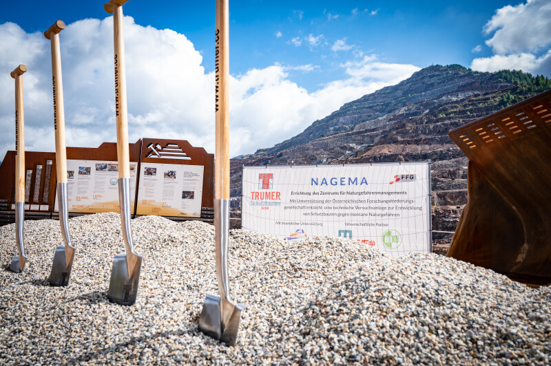 TRUMER Schutzbauten, kein unbekanntes Unternehmen in der Region und in Österreich, wird das Forschungs- und Kompetenzzentrum „NAGEMA“ für Naturgefahrenmanagement errichten - der Spatenstich dazu erfolgte im September. Grußworte und Glückwünsche übermittelten der Eisenerzer Bürgermeister Thomas Rauninger, Landesrat Johann Seitinger und Landesrätin Ursula Lackner. Musikalisch begleitet wurde der Spatenstich von der Bergmusikkapelle Eisenerz. Pfarrer Anton Reinprecht aus Eisenerz segnete das Projekt und erinnerte in einer bewegenden Ansprache an die Grenzen des menschlichen Fortschritts. Es liege in der Verantwortung der Gesellschaft, den Respekt vor der Natur zu wahren und im Einklang mit ihr zu leben.