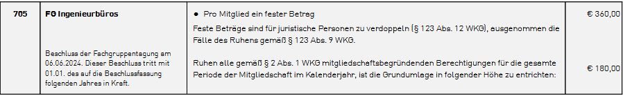 Nachstehend der aktuelle Grundumlagen-Beschluss der Fachgruppe Ingenieurbüros, gültig von 1.1. bis 31.12.2025:
