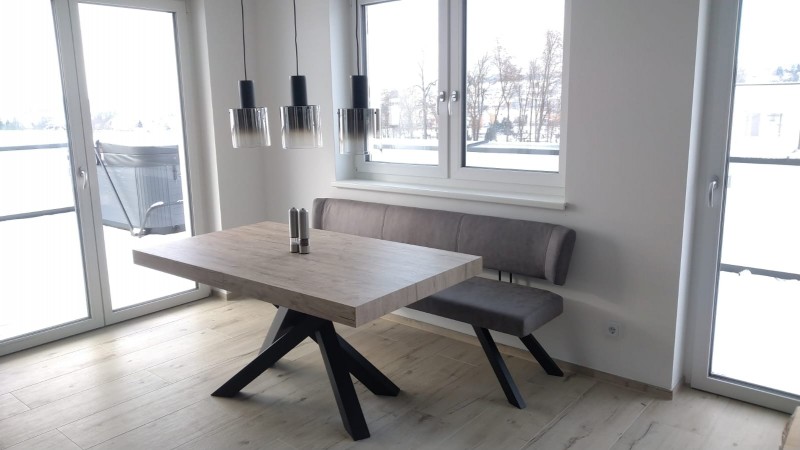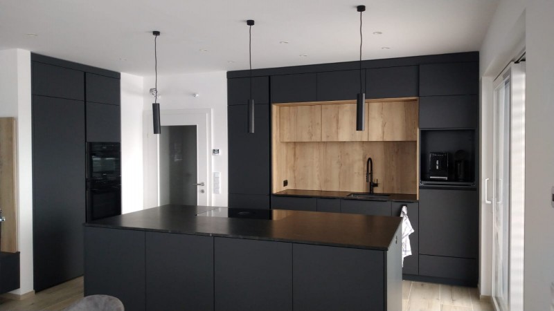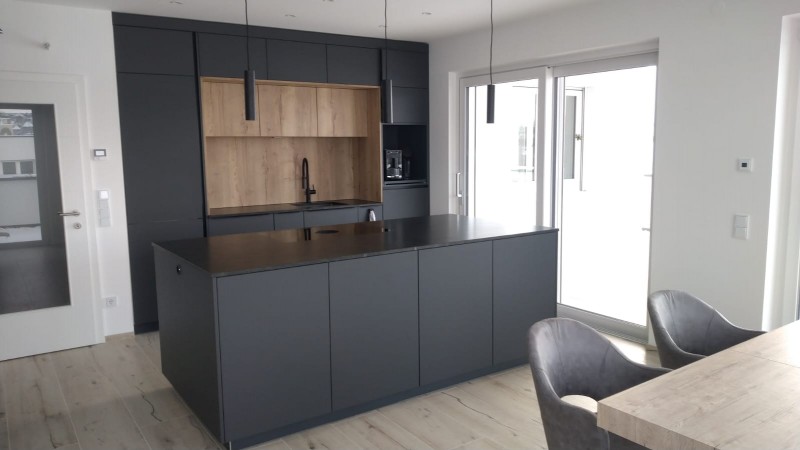Hier entstand eine Penthousewohnung mit der Kombination Eiche und Schwarz - Großformatige Fliesen welche hier täuschend echt wirken und der echten Eiche um nichts nachstehen.