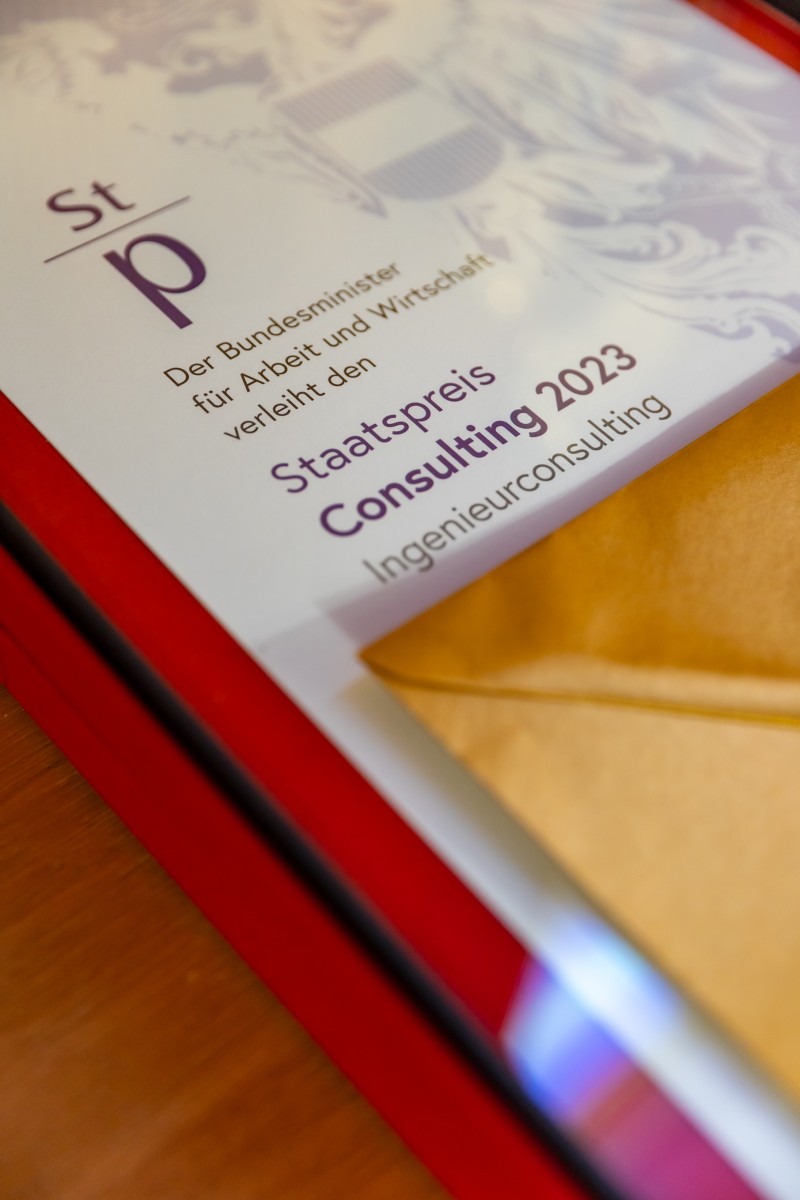 Staatspreis Consulting-Ingenieurconsulting 2023 an das Ingenieurbüro Tec-Solution Umwelt- & Wärmetechnik GmbH