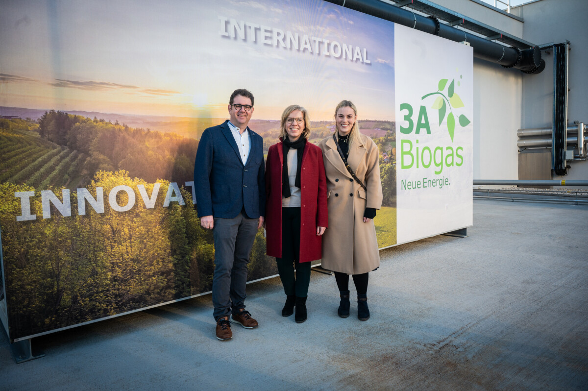 Klimaschutzministerin Leonore Gewessler betonte während ihres Besuchs die Wichtigkeit von dezentralen und regional implementierten Biogasanlagen zur Erfüllung der angestrebten Klimaschutzziele.