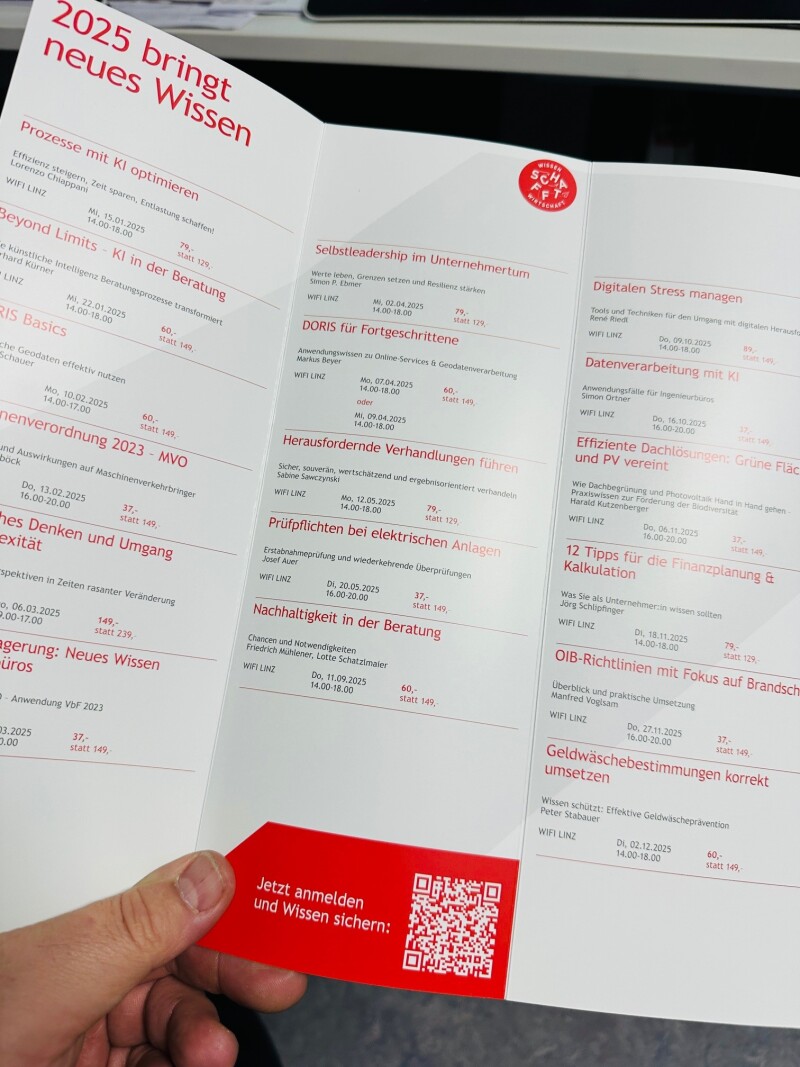 Unser aktueller Folder mit dem neuen Seminarprogramm für 2025 steht jetzt bereit.